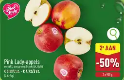 | 2 | Pink Lady Appels 2 x 900 g | ALDI | € 6,30 | € 4,72 | € 1,58 Korting | 09 februari 2026 | 14 februari 2026 | Bekijk aanbieding | |