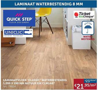| LAMINAATVLOER "CLASSIC" WATERBESTENDIG | Zelfbouwmarkt | € 23,95 | € 21,95 | € 2,00 Korting | 17 oktober 2023 | 13 november 2023 | |