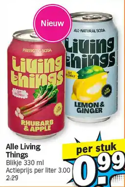 | Alle Living Things 330 ml | Albert Heijn | € 2,29 | € 0,99 | € 1,30 Korting | 16 maart 2026 | 22 maart 2026 |