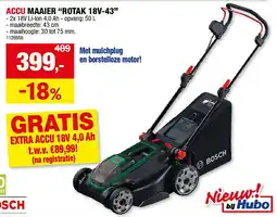 | 2 | ACCU MAAIER “ROTAK 18V-43” | Hubo | € 489,00 | € 399,00 | € 90,00 Korting | 18 maart 2026 | 29 maart 2026 | Bekijk aanbieding | |