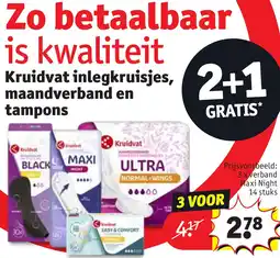 | 1 | Kruidvat inlegkruisjes, maandverband en 2+1 GRATIS | Kruidvat | € 4,17 | € 2,78 | 2+1 GRATIS | 28 april 2026 | 03 mei 2026 | Bekijk aanbieding | |