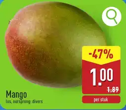 | 1 | Mango 1 stuk | ALDI | € 1,89 | € 1,00 | -47% | 05 januari 2026 | 10 januari 2026 | Bekijk aanbieding | |