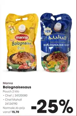 | Manna Bolognaisesaus 2 kg | Hanos | -30% | 22 september 2025 | 05 oktober 2025 | |||