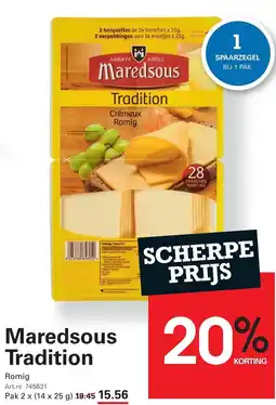 | 2 | Maredsous Tradition 2 x 14 x 25 g | Sligro | € 19,45 | € 15,56 | 20% KORTING | 30 april 2026 | 18 mei 2026 | Bekijk aanbieding | |