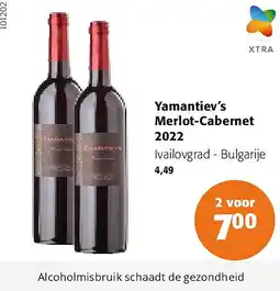 | 2 | Yamantiev's Merlot-Cabernet 2022 | Colruyt | € 7,00 | 28 januari 2026 | 10 februari 2026 | Bekijk aanbieding | |||