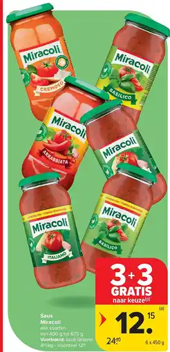 Carrefour Saus Miracoli aanbiedingSaus Miracoli 6 x 450 g 3+3 gratisCarrefour€ 24,30€ 12,153+3 gratis14 januari 202620 januari 2026