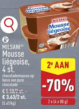 | 2 | MILSANI Mousse liégeoise 80 g x 4 | ALDI | € 5,58 | € 3,63 | € 1,95 Korting | 20 april 2026 | 25 april 2026 | Bekijk aanbieding | |