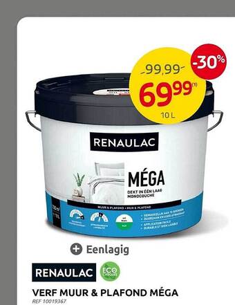 | Renaulac verf muur & plafond méga 10 Liter | Brico | € 109,00 | € 74,99 | -31% | 25 september 2024 | 14 oktober 2024 | |