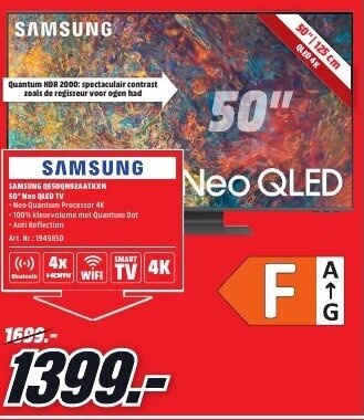 | SAMSUNG QE50QN90BATXXN NEO QLED 4K TV | MediaMarkt | € 1.399,00 | € 999,00 | € 400,00 Korting | 06 mei 2023 | 14 mei 2023 | |