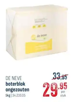 | 1 | De Neve Boterblok Ongezouten 5 KG | Horeca totaal | € 33,95 | € 29,95 | € 4,00 Korting | 05 februari 2026 | 28 februari 2026 | Bekijk aanbieding | |