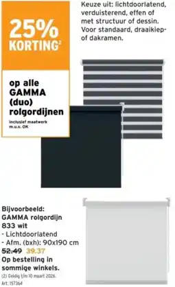 | 25% KORTING op alle GAMMA maatwerk raam- decoratie | GAMMA | € 16,99 | € 12,74 | € 4,25 Korting | 22 oktober 2025 | 04 november 2025 | |