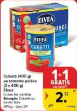 | 2 | Cubetti ou tomates pelées Elvea 800 g 1+1 GRATIS | Carrefour Market | € 2,32 | 1+1 GRATIS | 04 maart 2026 | 10 maart 2026 | Bekijk aanbieding | ||