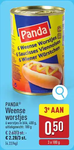 | Panda Frankfurterworsten 380 g, 250 G | ALDI | € 1,49 | 26 januari 2026 | 31 januari 2026 | |||