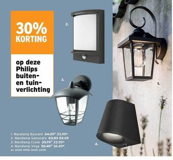 | Philips buitenlamp buzzard | GAMMA | € 34,29 | € 25,72 | € 8,57 Korting | 08 november 2023 | 21 november 2023 | |