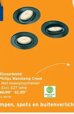 | Philips Wandlamp Creek | GAMMA | € 33,79 | € 25,34 | € 8,45 Korting | 08 november 2023 | 14 november 2023 | |