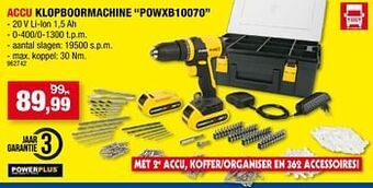 | Powerplus POWX00530 accu klopboormachine 20V Li-Ion + 2 accu's + lader | Hubo | € 149,00 | € 119,00 | € 30,00 Korting | 01 november 2025 | 31 januari 2026 | |