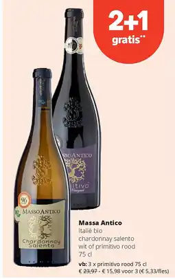 | Massa Antico primitivo rood 75 cl | Spar | € 23,97 | € 15,98 | € 7,99 Korting | 03 januari 2026 | 14 januari 2026 | |