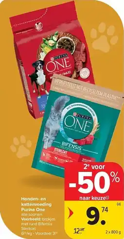 | Katten- en hondenbrokken one bifensis purina | Carrefour | € 11,98 | € 8,99 | -50% 2 voor naar keuze | 22 juni 2022 | 04 juli 2022 | |