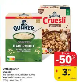 | Quaker Cruesli ou granola | Delhaize | € 8,58 | € 6,00 | € 2,58 Korting | 27 november 2025 | 03 december 2025 |