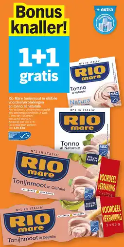 | Rio Mare Tonijnmoot in olijfolie 120 g 1+1 gratis | Albert Heijn | € 4,79 | 1+1 gratis | 12 januari 2026 | 18 januari 2026 | ||