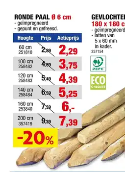 | Ronde paal ø 6 cm | Hubo | € 2,59 | € 1,99 | € 0,60 Korting | 08 februari 2023 | 19 februari 2023 | |