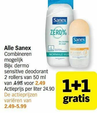 Albert Heijn Sanex Zero% sensitive deodorant roller aanbiedingSanex Zero% sensitive deodorant roller 1+1 gratisAlbert Heijn€ 3,991+1 gratis01 december 202507 december 2025