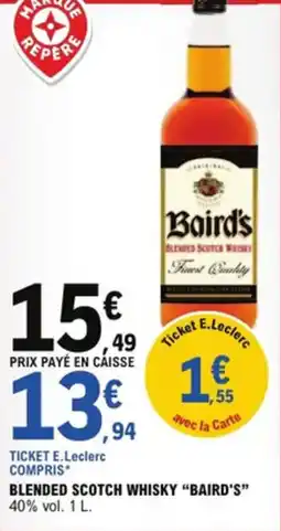 | 1 | Blended scotch whisky baird's 1 L | E.Leclerc | € 15,49 | € 13,94 | € 1,55 Korting | 30 december 2025 | 10 januari 2026 | Bekijk aanbieding | |