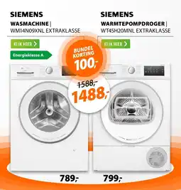 | Siemens WM14N2M4FG smartFinish + Siemens WQ33G1DEFG | Coolblue | € 1.375,00 | € 1.339,00 | € 36,00 Korting | 02 september 2025 | 30 januari 2026 |