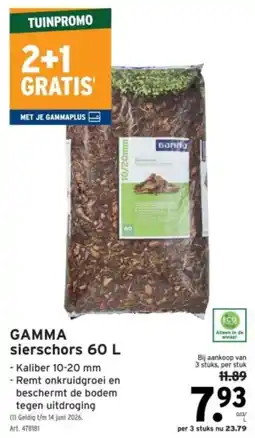 | GAMMA Sierschors 60 L 2+1 gratis | GAMMA | € 11,89 | € 7,93 | 2+1 gratis | 08 april 2026 | 21 april 2026 | |