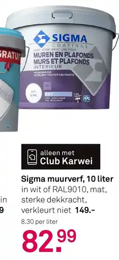 | 1 | Sigma Muurverf 10 L | Brico | 04 maart 2026 | 15 maart 2026 | Bekijk aanbieding | ||||