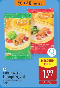 | 2 | Primo Snacks Loempia's 2 x 175 g | ALDI | € 1,99 | 02 februari 2026 | 07 februari 2026 | Bekijk aanbieding | |||