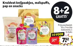 | Kruidvat knijpzakjes, maïspuffs, pap en snacks 8+2 gratis | Kruidvat | € 9,90 | € 7,92 | 8+2 gratis | 28 april 2026 | 03 mei 2026 | |