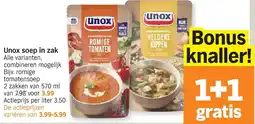 | Unox Soep in zak 570 ml 1+1 gratis | Sligro | € 8,18 | € 4,08 | 1+1 gratis | 12 maart 2026 | 06 april 2026 | |