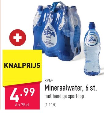 | SPA mineraalwater 6 st 6 x 75cl | ALDI | € 4,99 | 09 januari 2023 | 15 januari 2023 | |||