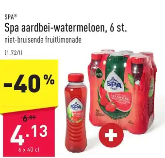 | Spa aardbei-watermeloen 6 x 40cl | ALDI | € 6,89 | € 4,13 | -40% | 24 april 2023 | 30 april 2023 | |