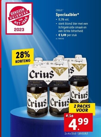 | Crius speciaal- bier | Lidl | € 6,98 | € 4,99 | € 1,99 Korting | 23 januari 2023 | 28 januari 2023 | |