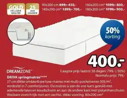| Dreamzone Driva GS100 springmatras 80 x 200 cm | Jysk | € 799,00 | € 400,00 | 50% korting | 20 januari 2025 | 31 januari 2025 | |