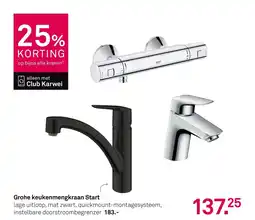 | 1 | Grohe keukenmengkraan Start | Karwei | € 183,00 | € 137,25 | 25% KORTING | 20 februari 2026 | 01 maart 2026 | Bekijk aanbieding | |