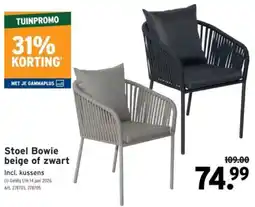 | Stoel Bowie beige of zwart | GAMMA | € 109,00 | € 74,99 | 31% korting | 08 april 2026 | 21 april 2026 | |