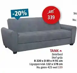 | 2 | TANK Zetelbed Stof grijs 220 x 89 x 91 cm | Weba | € 425,00 | € 339,00 | -20% | 03 januari 2026 | 31 januari 2026 | Bekijk aanbieding | |