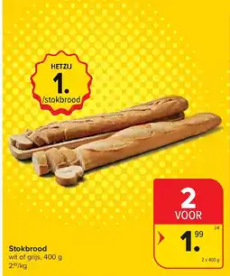 | 3 | Wit stokbrood 250 G | Carrefour Market | € 0,99 | 22 april 2026 | 28 april 2026 | Bekijk aanbieding | |||