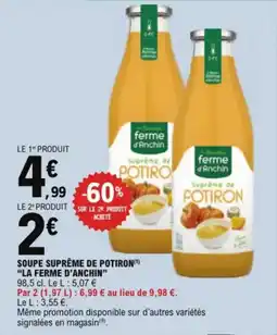 | 2 | Soupe suprême de potiron la ferme d'anchin 98,5 cl | E.Leclerc | € 2,00 | -60%SUR LE 2 PRODUIT | 30 december 2025 | 10 januari 2026 | Bekijk aanbieding | ||
