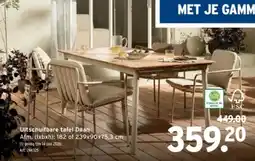 | Uitschuifbare tafel Daan | GAMMA | € 499,00 | € 379,00 | € 120,00 Korting | 21 mei 2025 | 03 juni 2025 | |