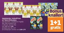| DubbelFrisss Boost en Taksi 1.5 literpakken | Albert Heijn | € 3,98 | € 1,99 | € 1,99 Korting | 30 juni 2025 | 06 juli 2025 | |