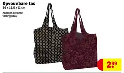 | Opvouwbare tas 60 x 45 cm | Kruidvat | € 3,49 | 15 april 2025 | 27 april 2025 | |||