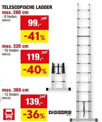 | Diggers telescopische ladder 1x11 sporten 3,2m | Hubo | € 209,00 | € 129,00 | € 80,00 Korting | 16 april 2025 | 27 april 2025 | |