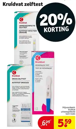 | Kruidvat urineweginfectie test 3 stuks | Kruidvat | € 6,99 | € 5,59 | € 1,40 Korting | 10 februari 2026 | 15 februari 2026 | |