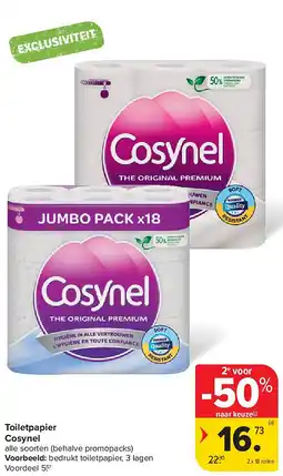 | 2 | Toiletpapier Cosynel | Carrefour | € 22,30 | € 16,73 | € 5,57 Korting | 18 februari 2026 | 24 februari 2026 | Bekijk aanbieding | |