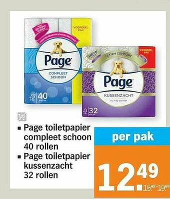 | Page toiletpapier compleet schoon of kussenzacht | Albert Heijn | € 12,49 | 27 december 2021 | 03 januari 2022 | |||
