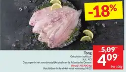 | Tong Gekuist en bakklaar Kal.: 4/5 100 G | Intermarché | € 4,99 | € 3,99 | € 1,00 Korting | 04 november 2025 | 09 november 2025 |